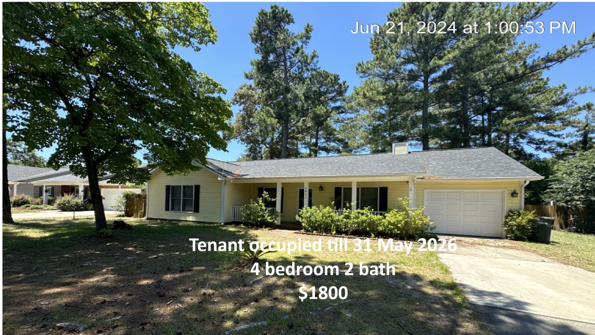 4 bedroom 2 bath home with a single car garage at the end of a dead end street. New paint and bedroom carpet. Living room with fireplace and open kitchen. Fenced backyard with patio. Pets permitted, NO HIGH RISK ANIMALS OR SMOKERS. Less than 15 minutes to the gates of Fort Liberty (Bragg), NC.